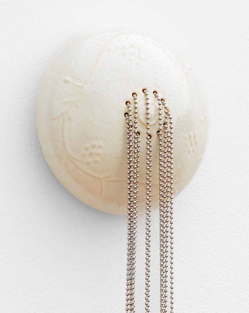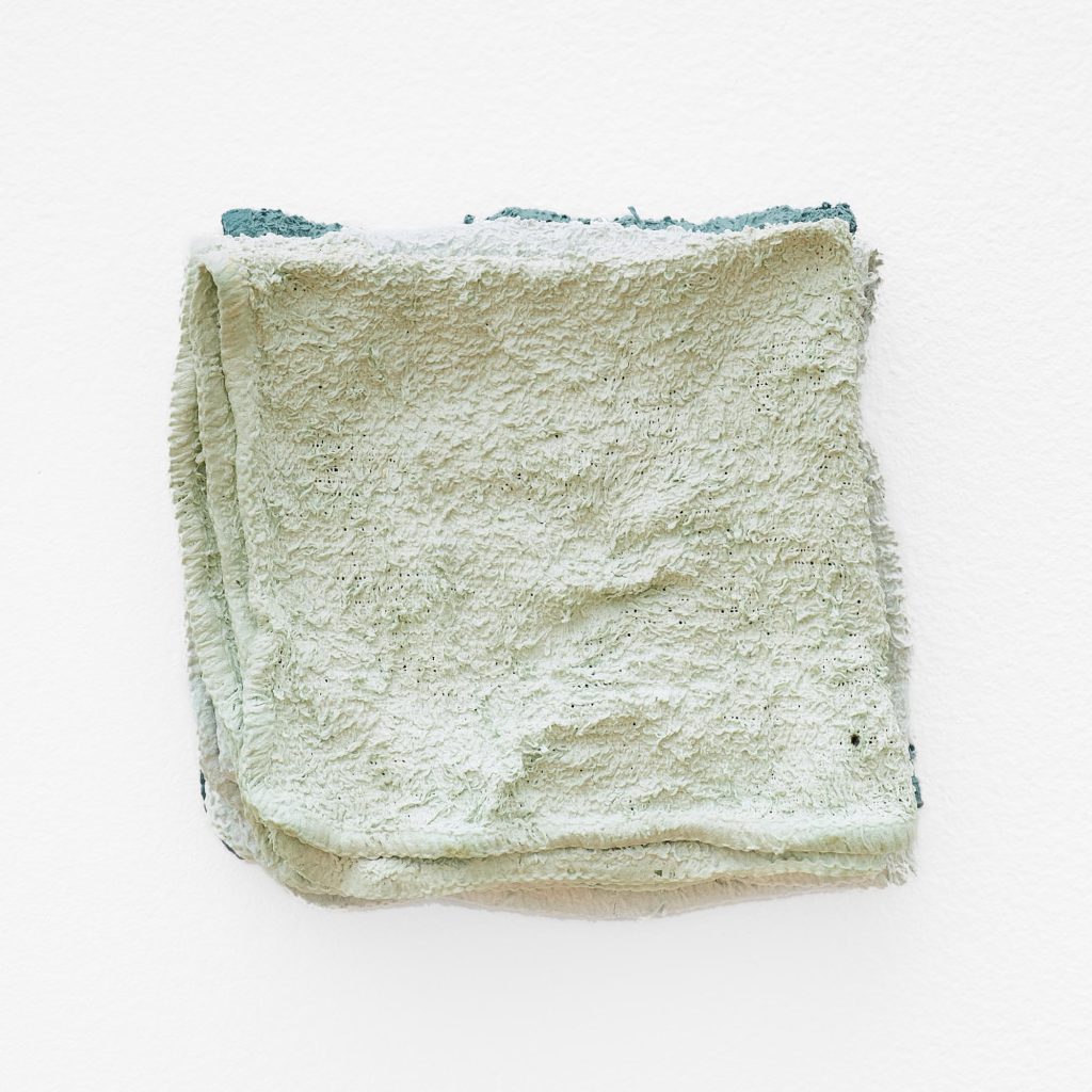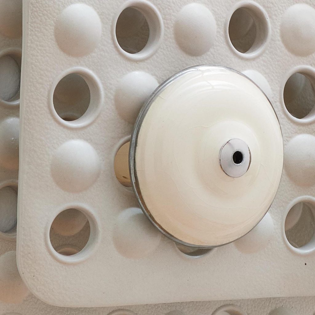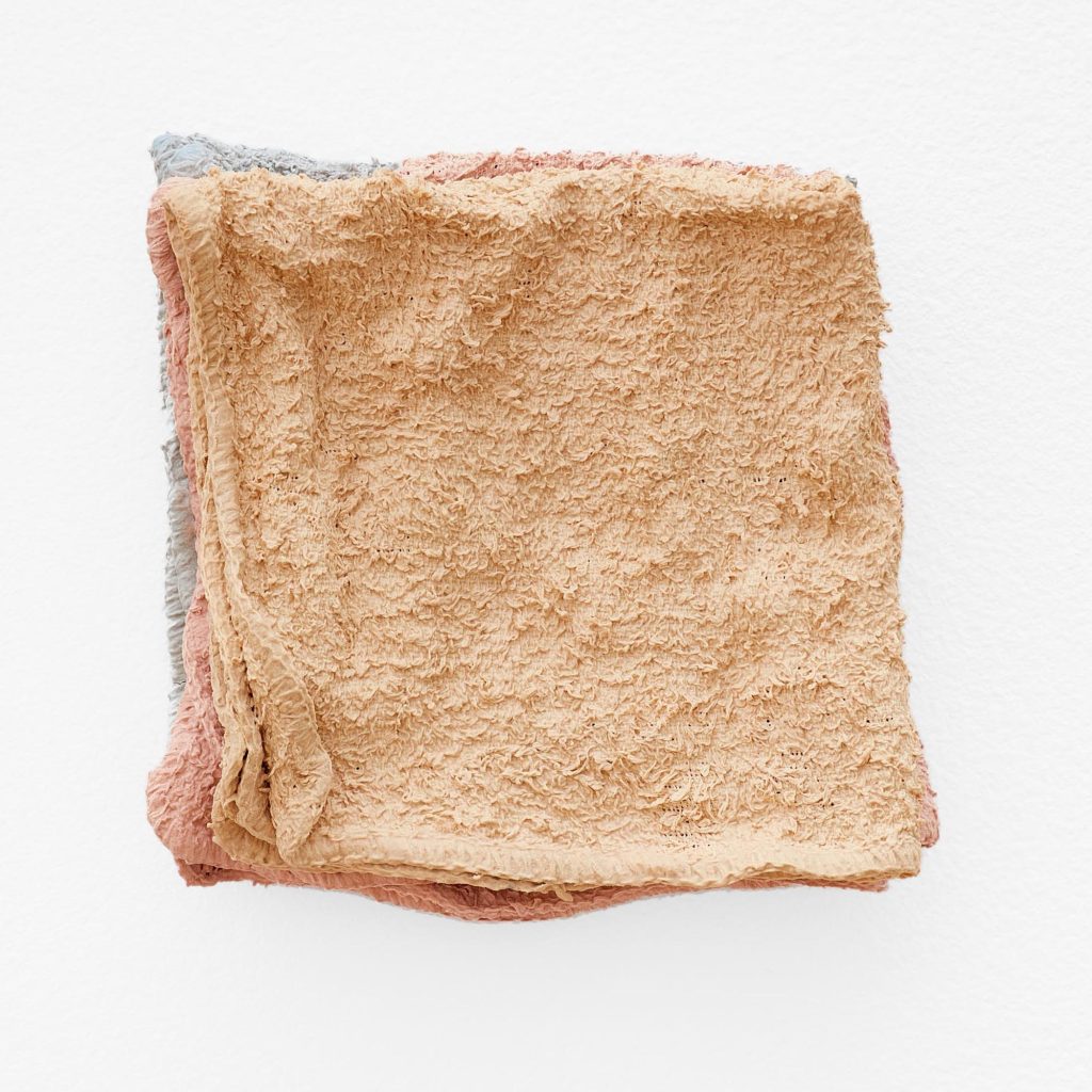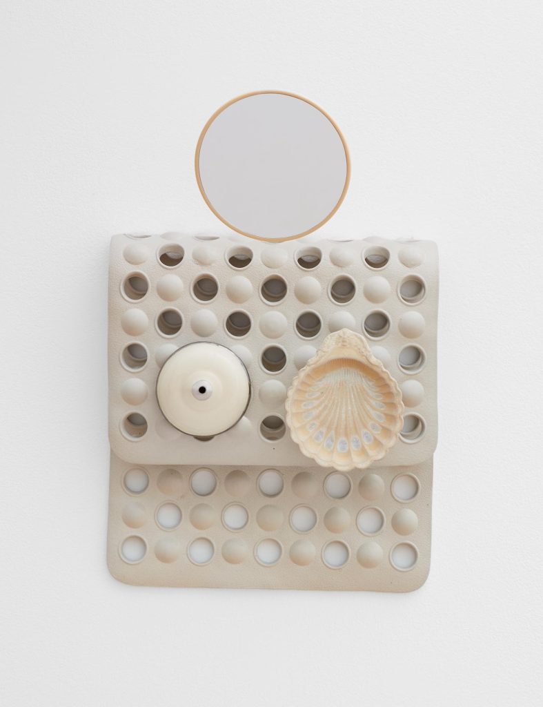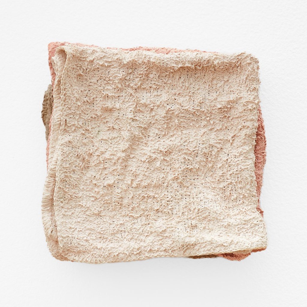 Olivia Zubko’s work in sculpture, utilizing ceramic, fibers, and found materials is thematically centered around the bathroom and other domestic of private environments, employing cast replicas of fixtures and found materials to create sculptures that evoke the viewer’s personal memories and associations with these intimate spaces. Zubko’s work investigates the nuanced relationship between these objects and the human body, as well as the broader dynamic between the individual and the domestic sphere of private space and personal intimacy.