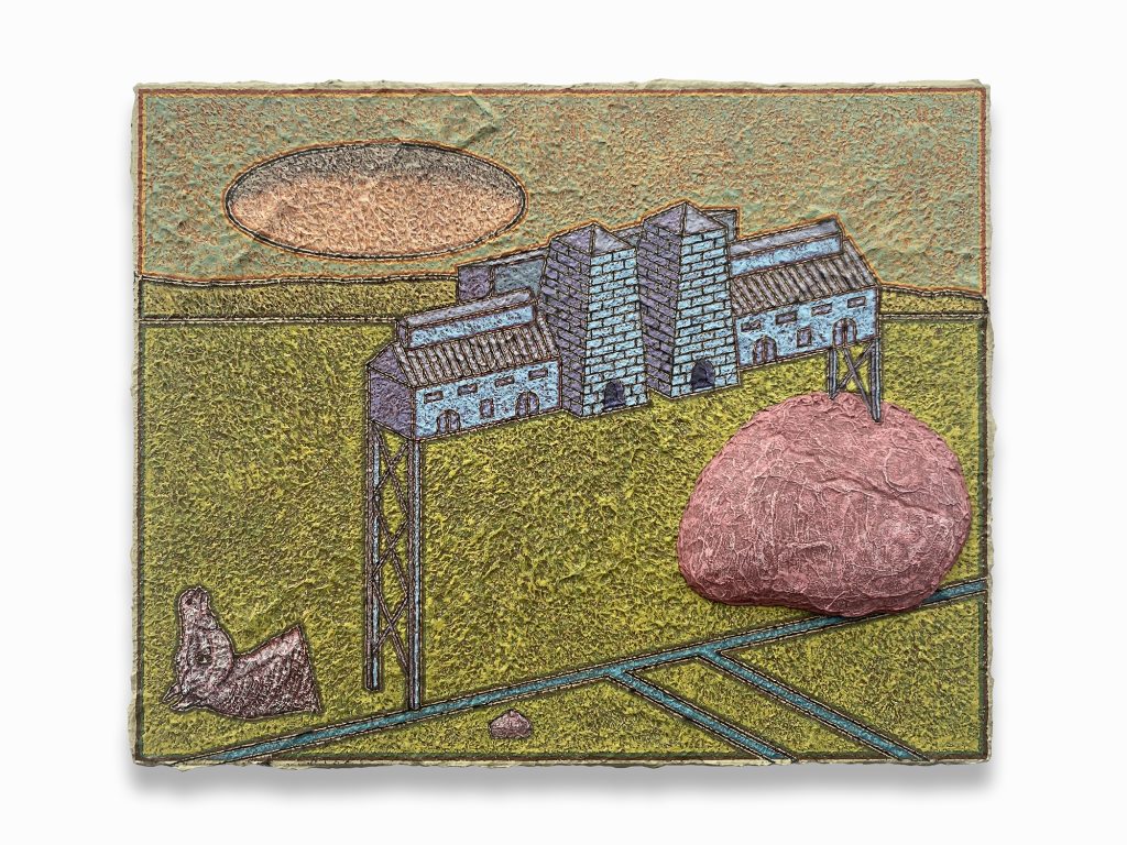 Aya Nakamura’s (b. 1982, lives and works in Chicago) colored pencil drawings, often on irregularly-shaped handmade paper that she makes in her Chicago studio, are built slowly and through layered applications of colored pencil. Nakamura describes the aesthetic sensibility of these drawings as “magpie,” an attraction to disparate things that compel attention through their distinctiveness or evocative power, and toriawase, a Japanese term referring to the bringing together of varied elements to create a resonant whole. Over the past year, Nakamura’s attention has turned toward features of a home she and her partner have recently moved into, and the human body. What has emerged is a series of drawings that uncovers the uncanny and “creaturely” qualities shared by the built and the bodily, allowing one to stand in for the other.
