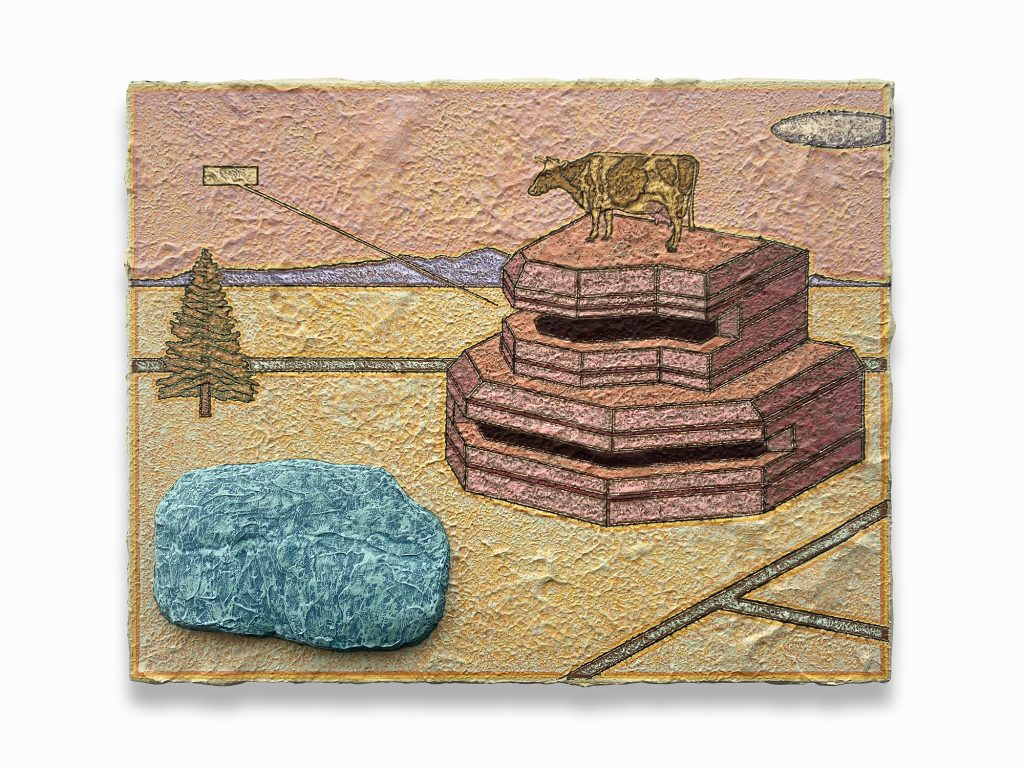 Ryan Standfest (b. 1974, lives and works in Detroit) is an artist and publisher. Termite-like, with a disregard for illusionism and naturalism, Standfest erodes notions of certainty to bore down into idealism and disillusionment. Uninterested in symbolism, the structures in his paintings depicted are exactly what they are: a building, a tree, a cloud, a rock, a hole, a road. However, these forms populate a rigid, tightly constructed space, not unlike a stage set, where their seemingly inert situational relationships yield a tension between aspiration and forfeiture, order and disorder, meaning and meaninglessness. Indecisiveness is staged in existential, emotionally reticent landscapes where doubt and irresolution are reinforced.