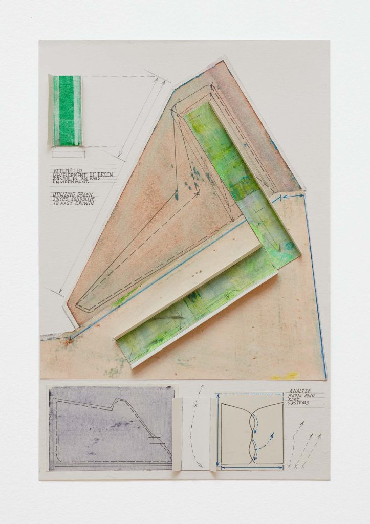 Marshall Brown (b. 1973, lives and works in Princeton, NJ) is an architect, urbanist, and futurist whose work creates new connections, associations, and meanings among disconnected architectural and urban remnants. We’ll be showing a piece from his Forgeries series, a growing body of work that responds directly to contemporary art’s portrayals of architecture. In these pieces, Brown dismantles photographs by several contemporary artists and reassembles them to create collages that borrow pictorial strategies from the early modern architect and prolific collagist, Ludwig Mies van der Rohe. The Forgeries play a double game. Brown retools Mies’ pictorial flatland as a mirror to reflect contemporary art’s gaze back on itself and constructs new spaces that subvert our attempts to separate the two creative worlds of architecture and art.