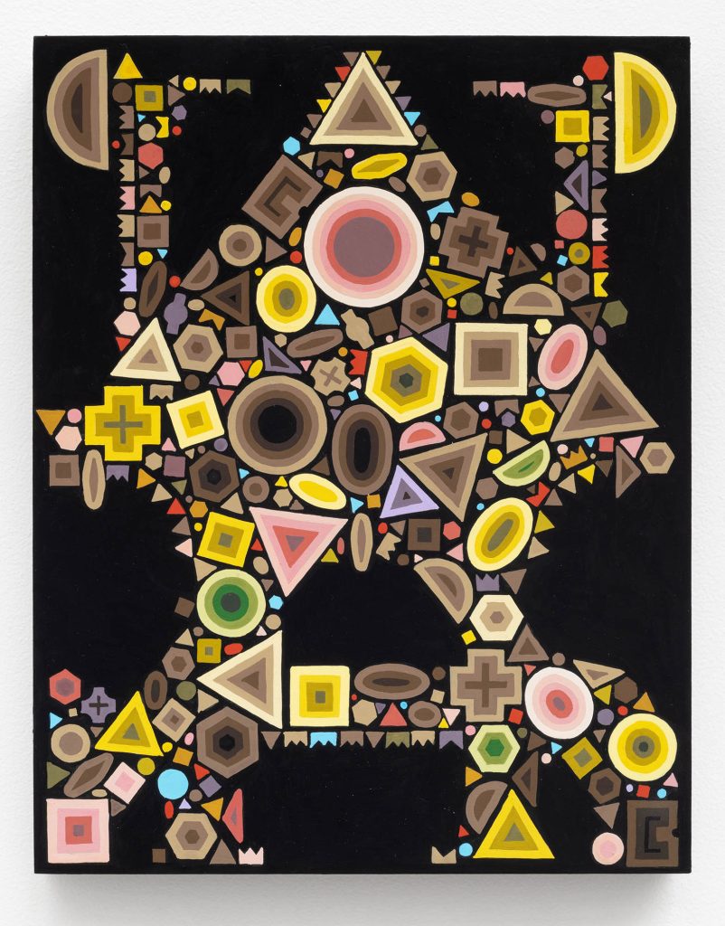 Plotted out beforehand using graphite pencil, rulers and protractors, and hand-painted with the illusion of hard-edged precision, Edie Fake’s (b. 1980, Evanston, IL) artistic practice mines the grammar of architecture to carve out space for bodies that have been othered and invalidated by dominant systems of knowledge. Fake’s abstract representations of community form and collapse, cohere and dissipate, reflective of the real experience within queer lives and their ever-shifting constellations, while centering his central concern for the audacity of queer utopian imagining