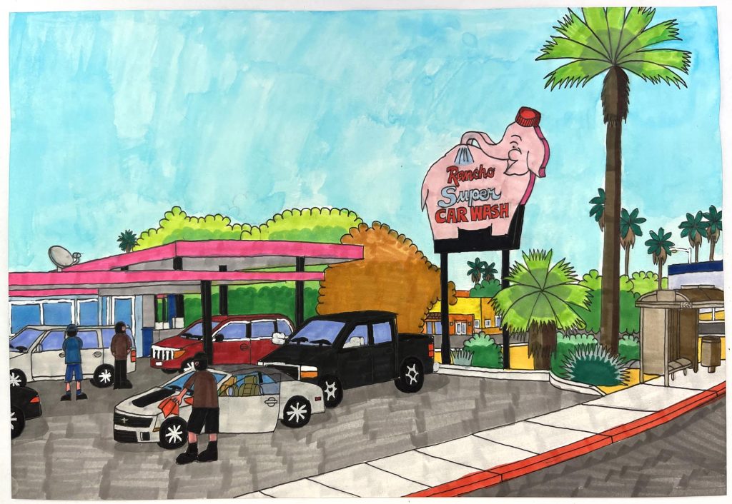 Using his iPad as a reference material, Joe Zaldivar (b. 1989, lives and works in Los Angeles) creates aerial view maps of locations around the world, often autobiographical, as well as street level renditions of the same locations using the Street View function of Google Maps. The resulting works, which combine technology and perspectival architectural drawing in a style reminiscent of cartoon animation, twist time and space both spatially and conceptually. Zaldivar has been an artist with the Tierra Art Studios in Los Angeles since 2011